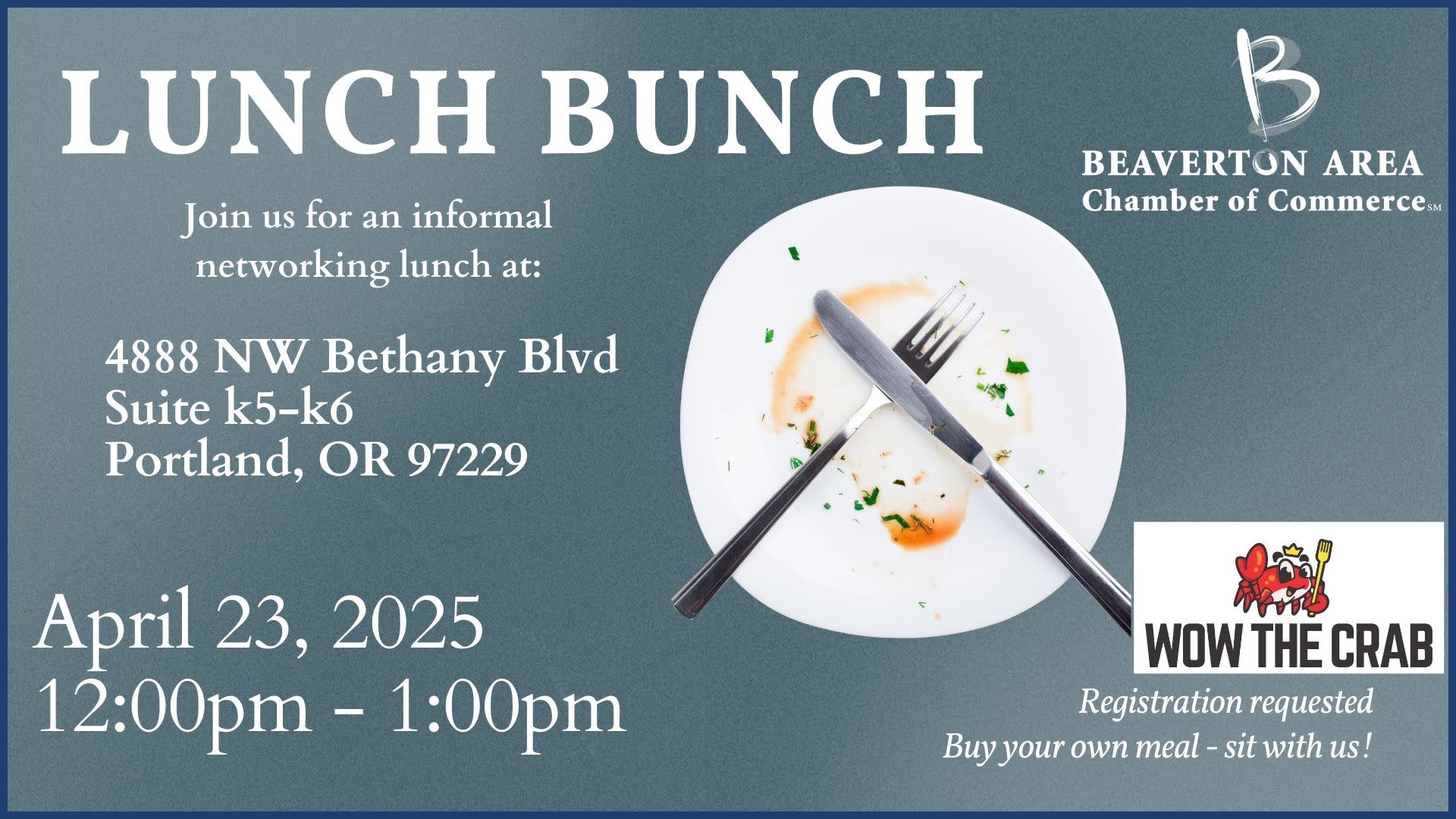 Remember, registration is requested so we can tell the restaurant how many to expect! Come hungry, leave with new connections and a satisfied stomach. We can't wait to see you there!
