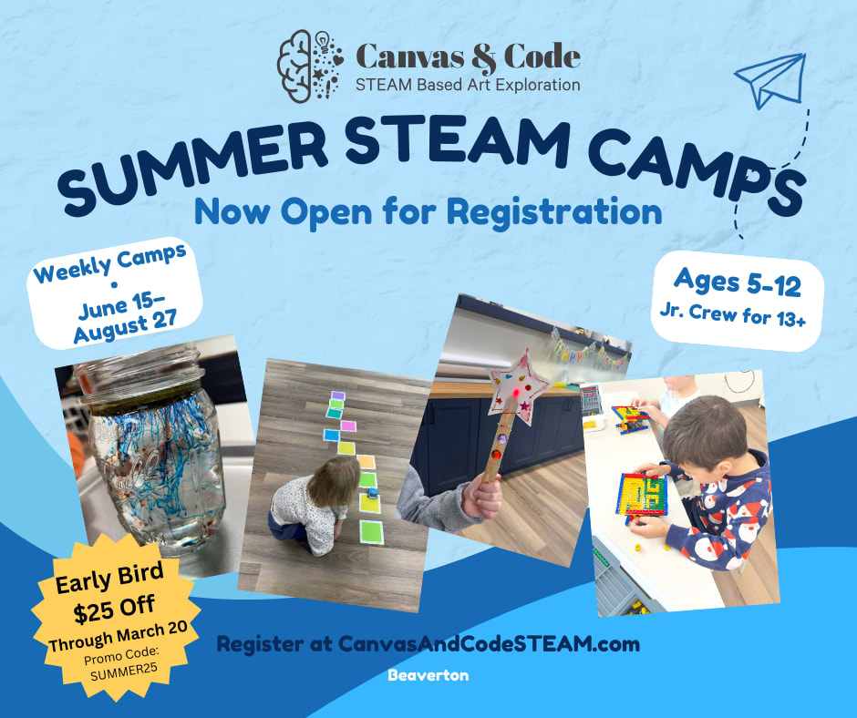 Canvas & Code LLC is a STEAM-based art studio offering hands-on learning experiences that blend science, technology, engineering, art, and math. We provide engaging classes, workshops, and camps for children, families, and adults, encouraging creativity, problem-solving, and innovation. From coding and robotics to painting, sculpture, and design, our programs invite learners of all ages to explore, experiment, and grow. Canvas & Code is proud to partner with our community to inspire curiosity and equip people with the skills to thrive in an ever-changing world.