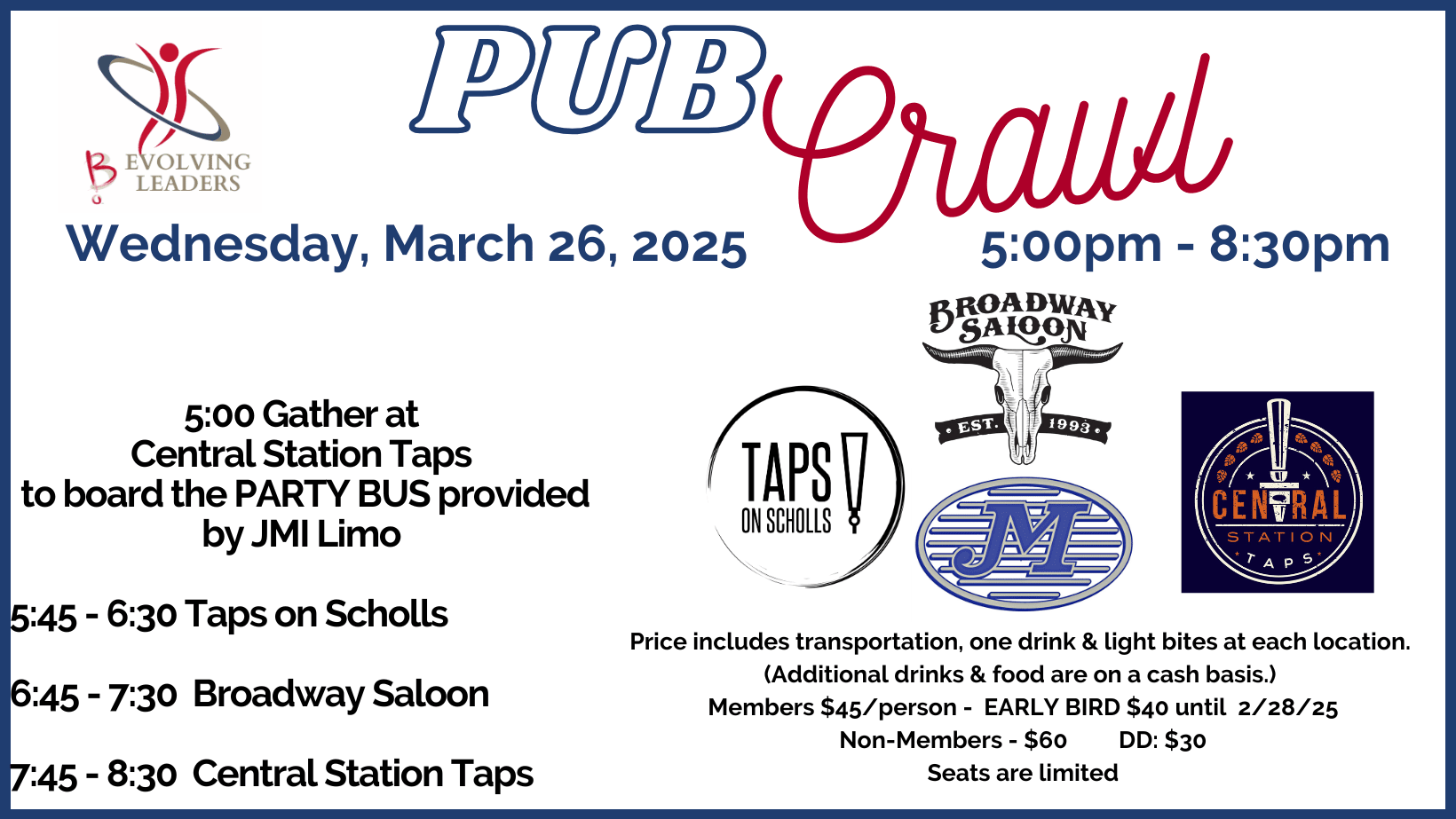We will gather at Central Station Taps between 5:00 and 5:30 pm Bus will leave promptly at 5:30 pm.