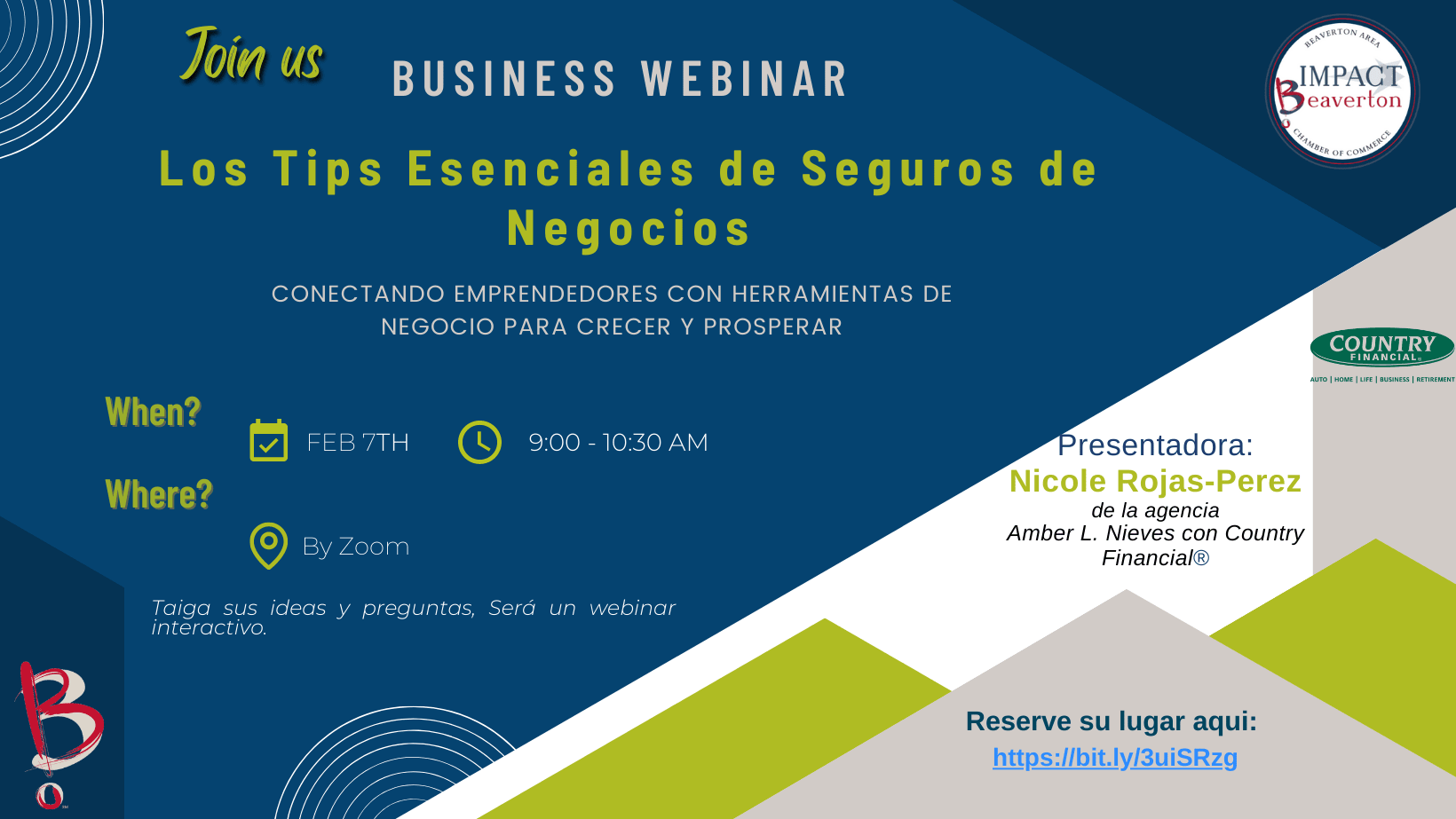 En este seminario web, Nicole Rojas-Pérez de la agencia Amber L. Nieves con Country Financial nos estará hablando dando Tips sobre lo que es un seguro de negocios y porque es tan esencial contratarlo para su negocio.