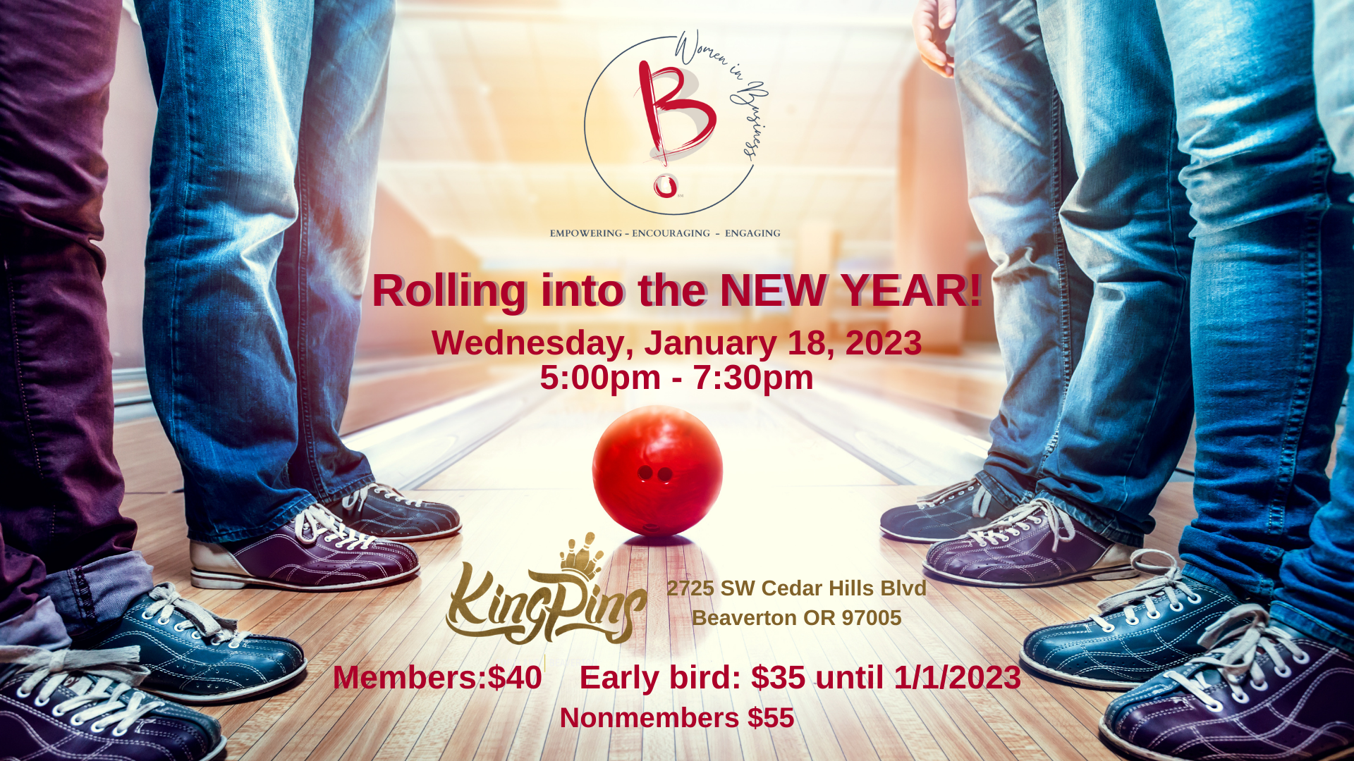 Women In Business is responsible for networking and educational opportunities focusing on empowering, encouraging, and engaging women. Start the new year with us as we go bowling at KingPins - Beaverton!